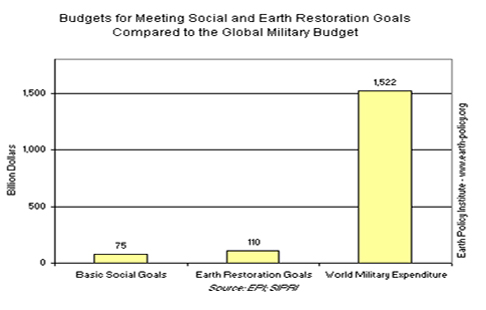 Global Spending on Basic Social Goals vs. Earth Restoration Goals vs. Military